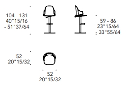 Stool with shell in resin and wood with upholstery in leather or fabric. Internal back with quilting. Adjustable metal base in bronze 100M, brass 104M, dark brass 105M and titanium 101M.