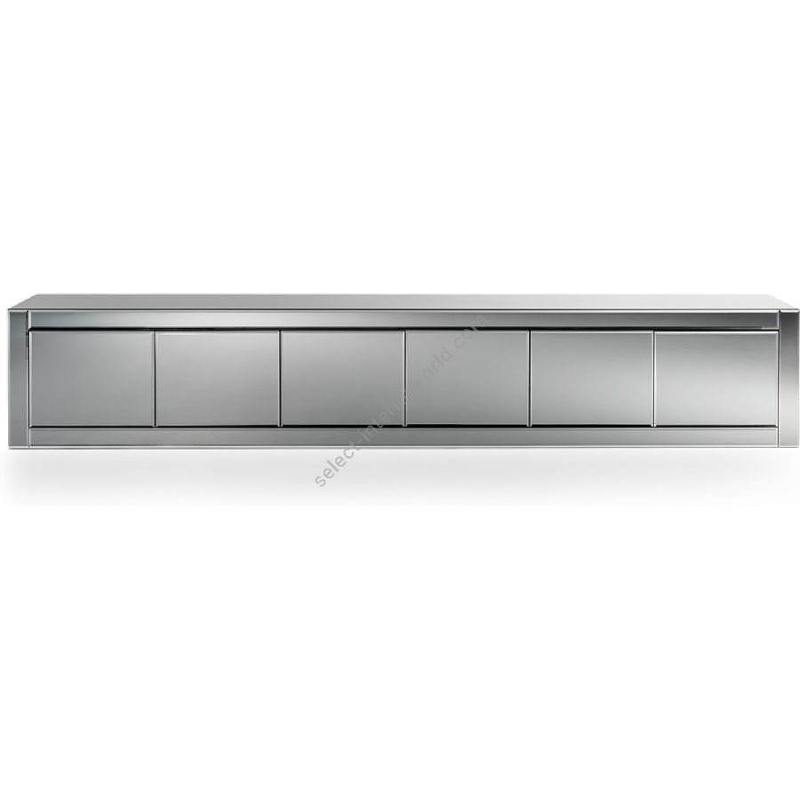 Sideboard in shiny lacquered wood covered in bevelled lacquered glass or in smoke mirror glass. Doors with push-pull opening or with optional crystal or Murano glass handles.