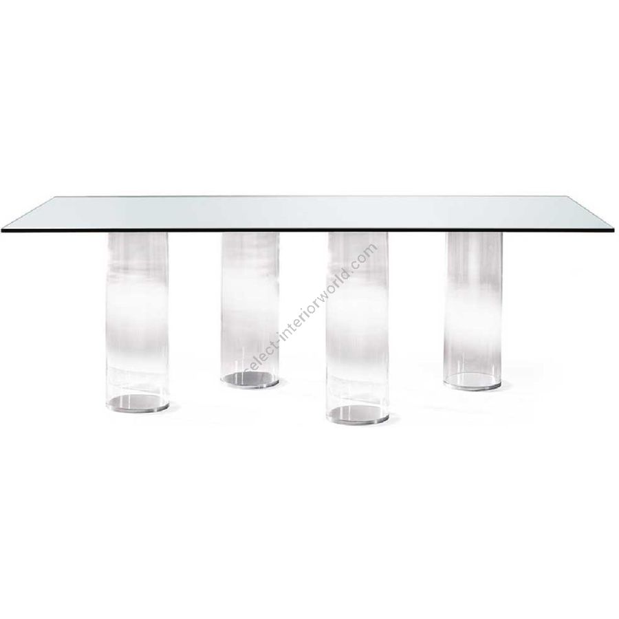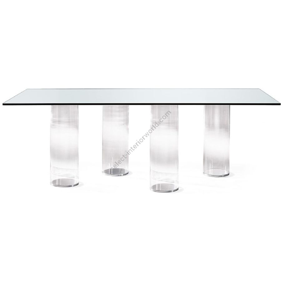 Dining table with base composed by Murano glass cylinders transparent, red, blue, aquamarine, amber, tobacco or amethyst or in the shaded sputtering finishing copper, bronze or silver. Top available in transparent glass, Marmoreflex or Legnoreflex