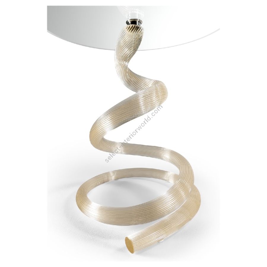 Side table with base in ribbed Murano glass: transparent, black, amethyst, tea or gold. Glass top 10 mm th. with 45° bevel.