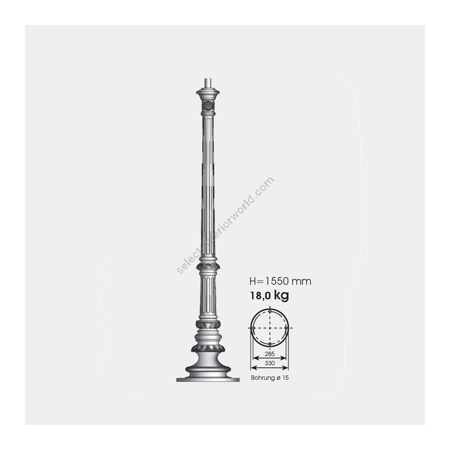 This high outdoor lamp comes from the portfolio of German brand Robers, famous for crafting exclusive and sustainable fixtures of steel dip hot galvanized, iron, copper, and cast aluminum. This post lamp is characterized by the design of the shade: both lower and upper parts have the same shape and are fully symmetric. The only difference is the finial that crowns the lamp. The lower pole is richly decorated while the upper has got an elegant carving and is ornated discreetly by the floral motifs. The lampshade is handcrafted of blown glass with opal finish and embraced by the graceful frame each rod of which is decorated in the same symmetric manner. The final fixture is available in 10 finishes.