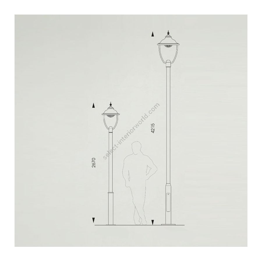 This high post lamp impresses with its exceptional design: the absence of a frame and, as a result, a unique position of the bulb. The designers of Robers (Germany) offer the laconic look of the base and the column, concentrating the whole attention at the shade. There is a frame with the roof embracing the globe-shaped shade featuring a clear finish, so it looks absolutely invisible. The LED bulb is attached to the roof and gives light at maximum downward and outward. The roof is ornated by a small classic finial.