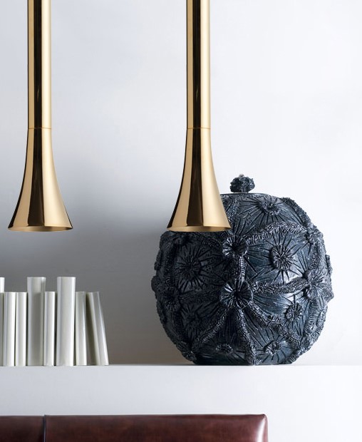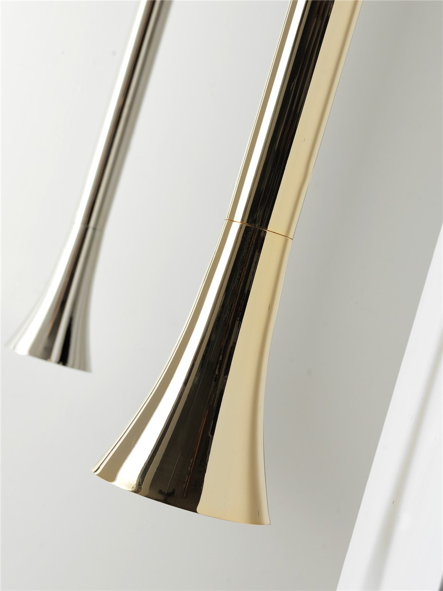 Brass pendant light in glossy gold.