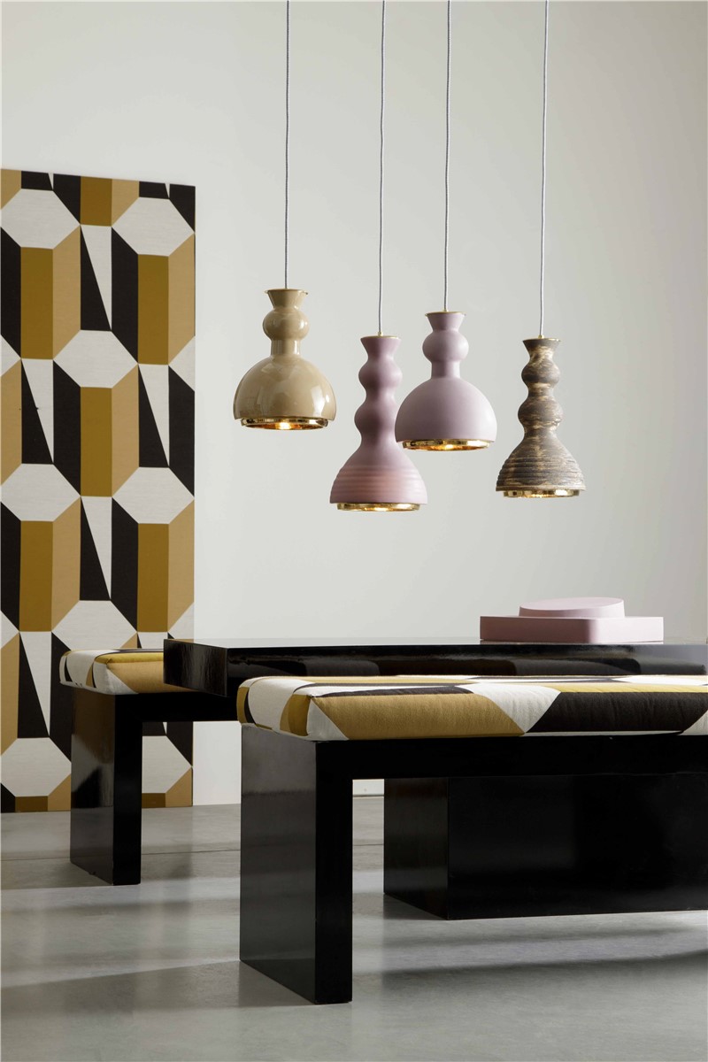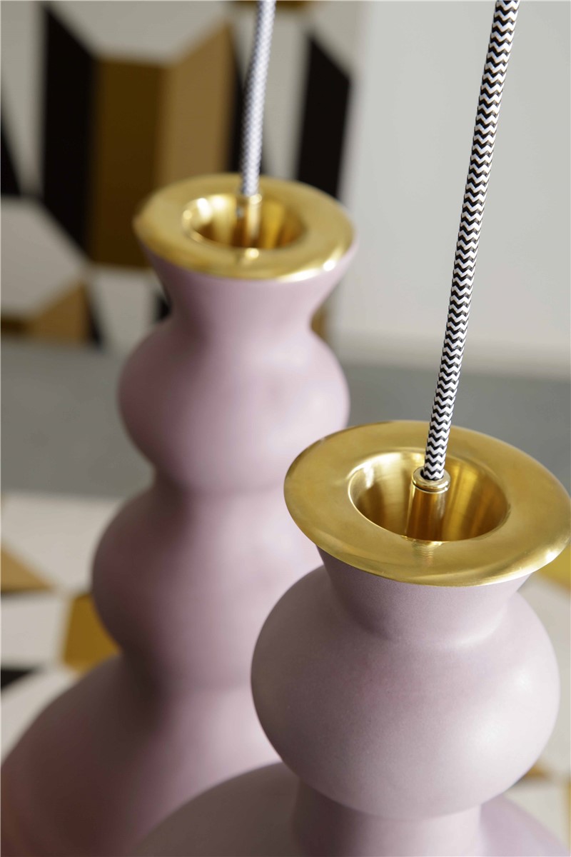 Suspension in glazed majolica, with brass details and gilded interior