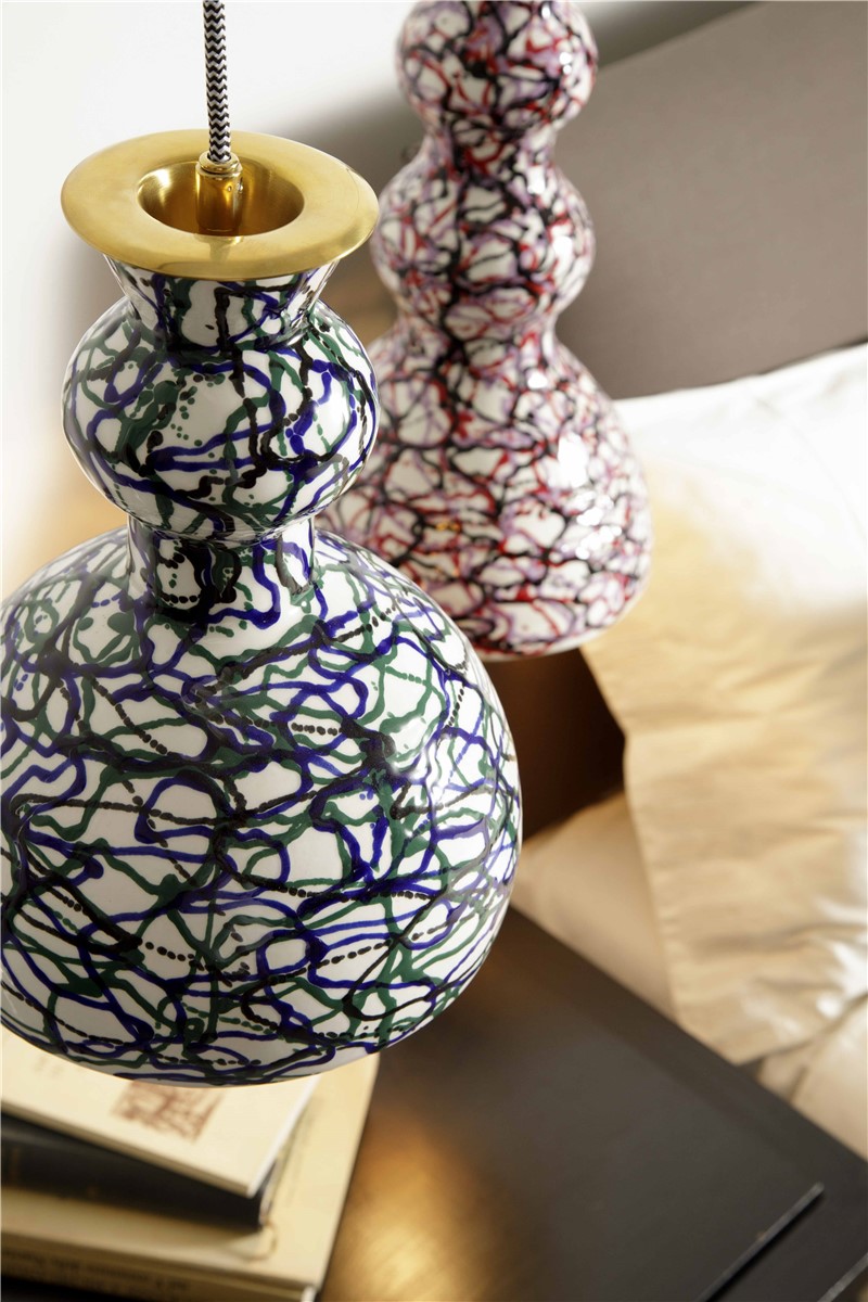 Suspension in hand ecorated majolica, with brass details and gilded interior