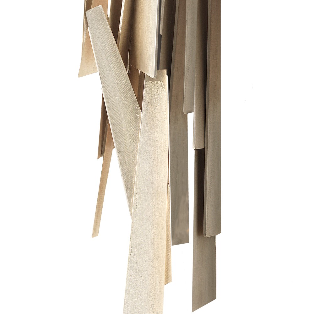 Brass pending chandelier composed of brass bars all welded together. The finish is in brushed silver aged. Due to the manual nature of this article, the sizes are indicative.