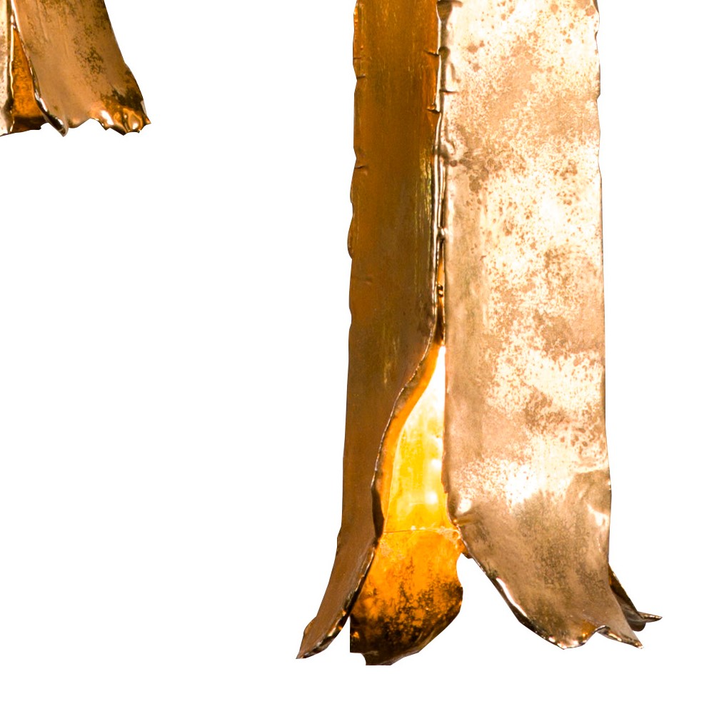 These majolica pendants, a type of ceramic, are stamped and then modeled by hand one by one. Disperse and then golden mediate the third fire. The cups on the ceiling and the details are in natural brass engraved by hand with the sieving technique. The peculiarity of this work is performed by skilled and experienced hands, where on the surface of the brass are performed many micro incisions close together so as to form a surface that seems to be an ancient golden silk. The pendant for its shape is suitable for contemporary environments as well as for living areas, adorns corridors, entrances and dining area. Ideal to be coupled with models of the same line in order to compose large groups of pendants. On request it can be modified and obtain a desired height.