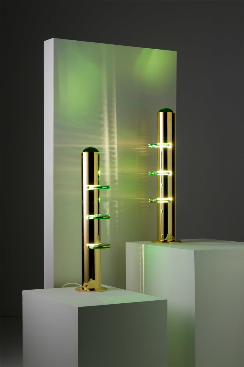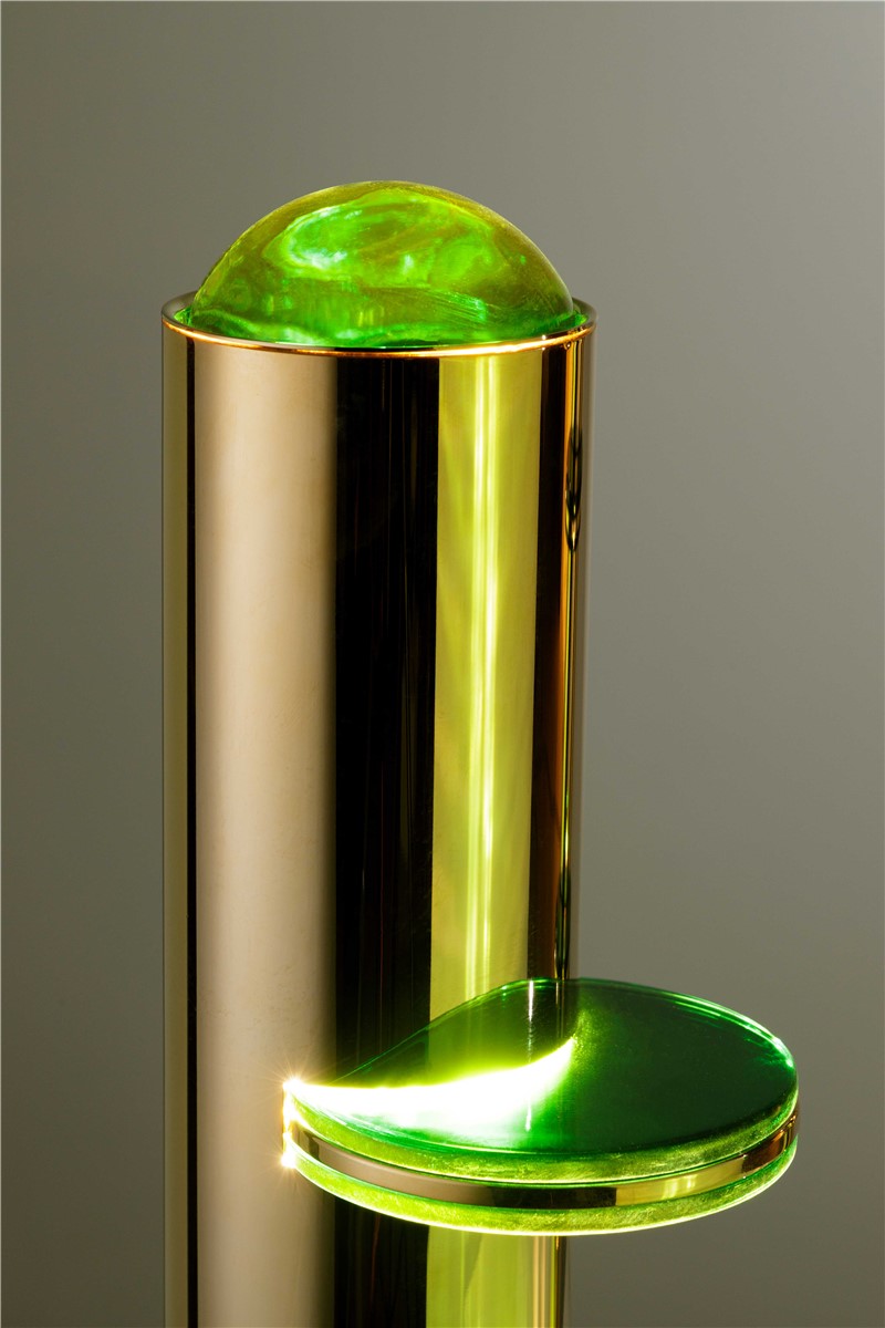 Table lamp in gilded brass and with crystal in green jade