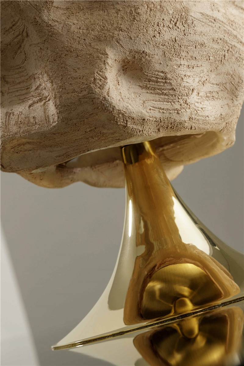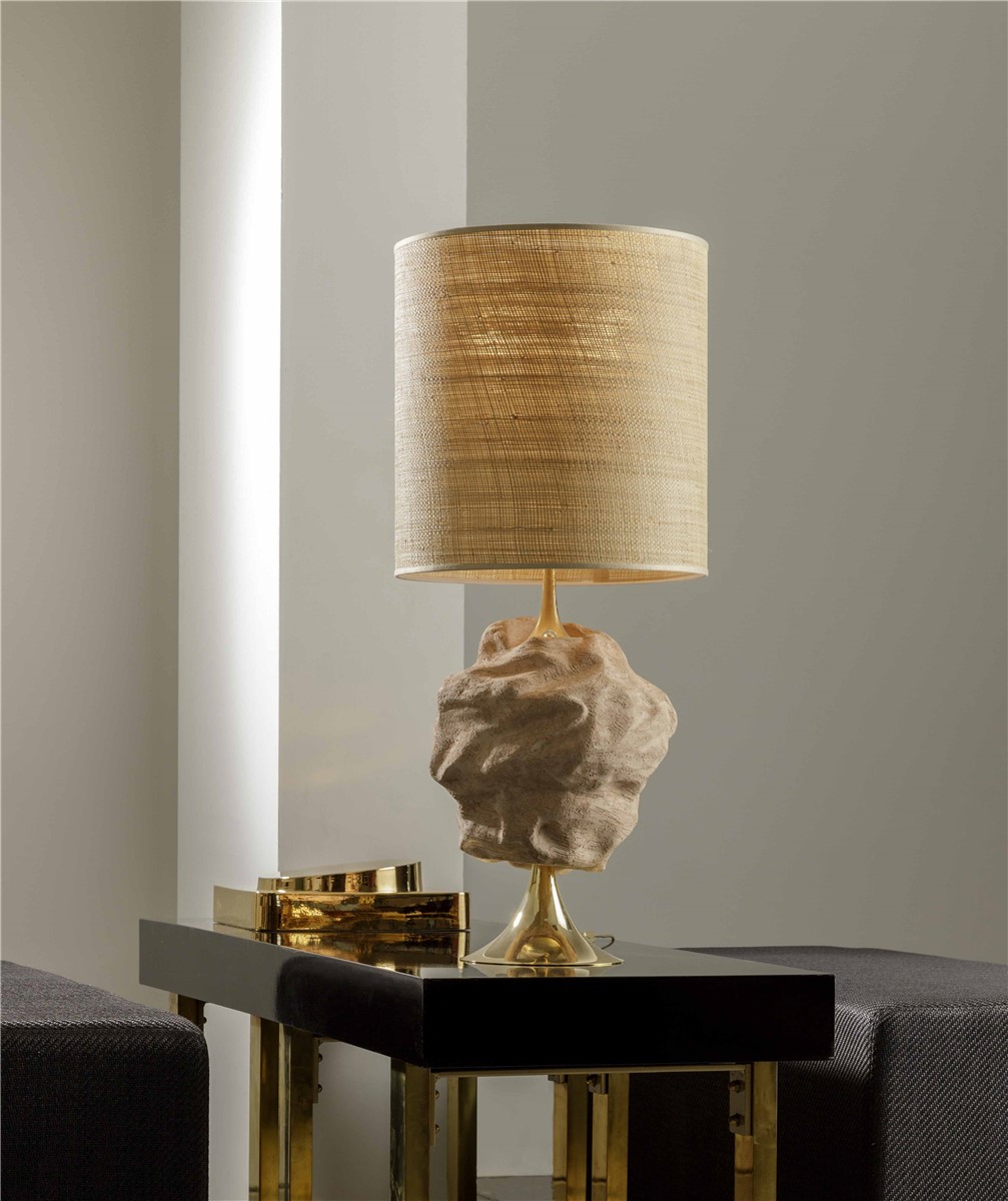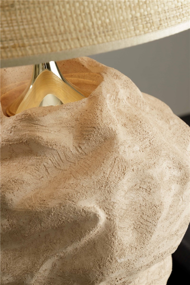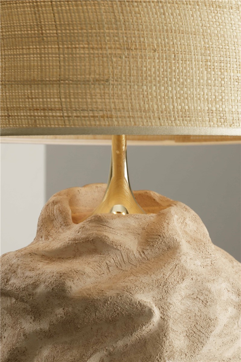Table lamp in rose clay with gilded details with natural straw lampshade