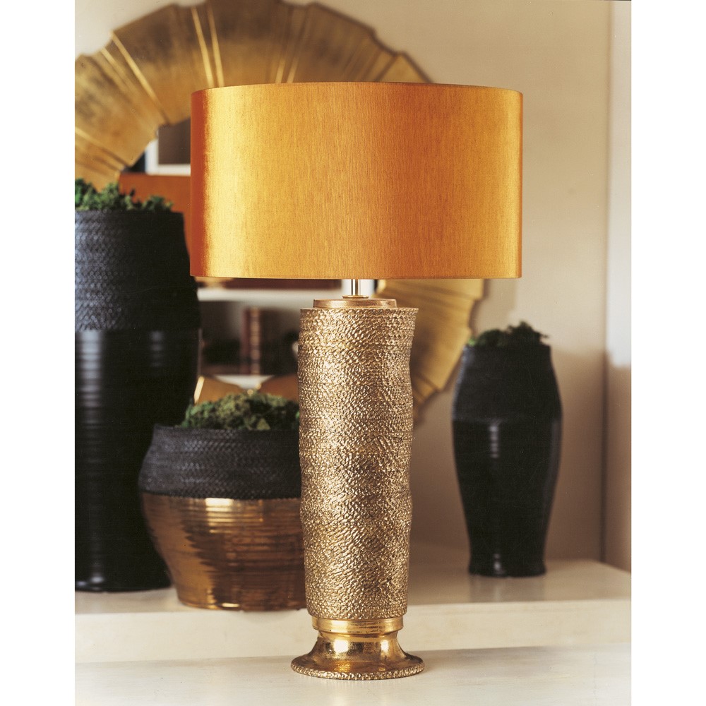 Lamp in gold plated, hand engraved majolica. Silk lampshade.