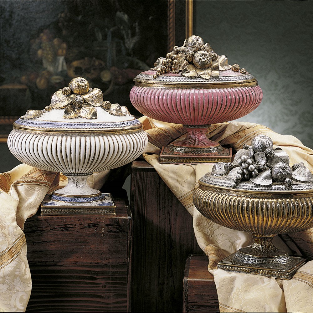 Hand engraved majolica potiche. Decorated with glazes, real gold and silver.