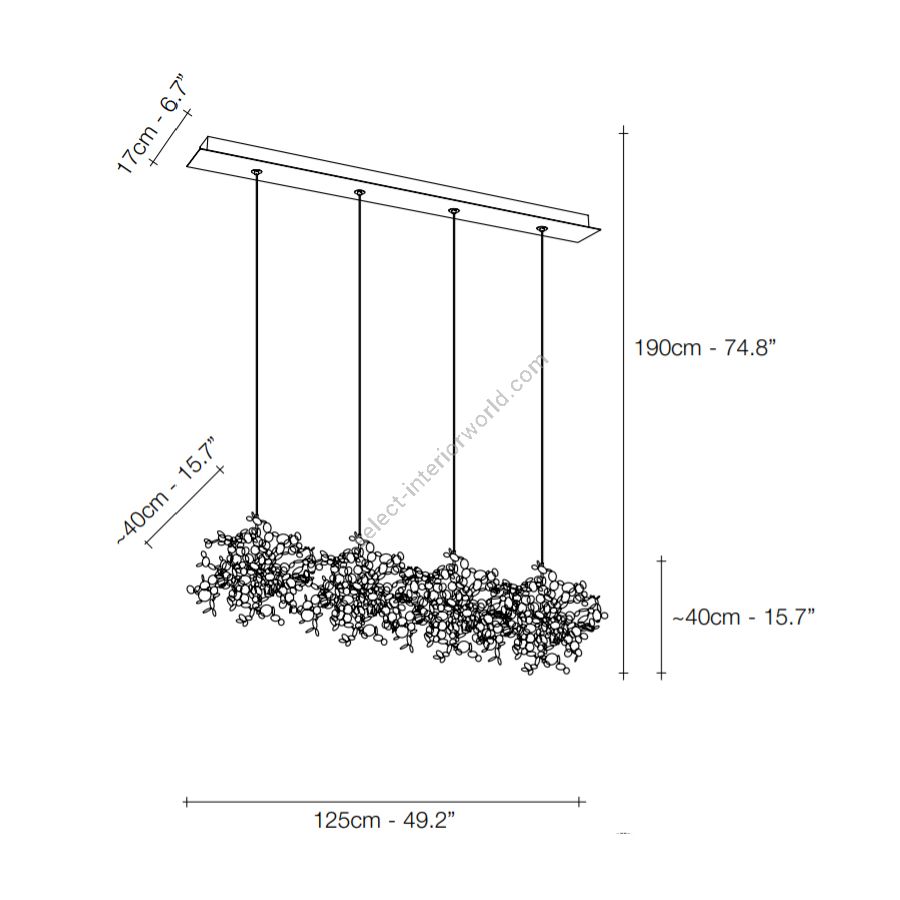 cm.: 190 (H1/40+H2/150) x 195 x 40 / inch.: 74.8" (H1/15.7"+H2/59.1")x 76.8" x 15.7"