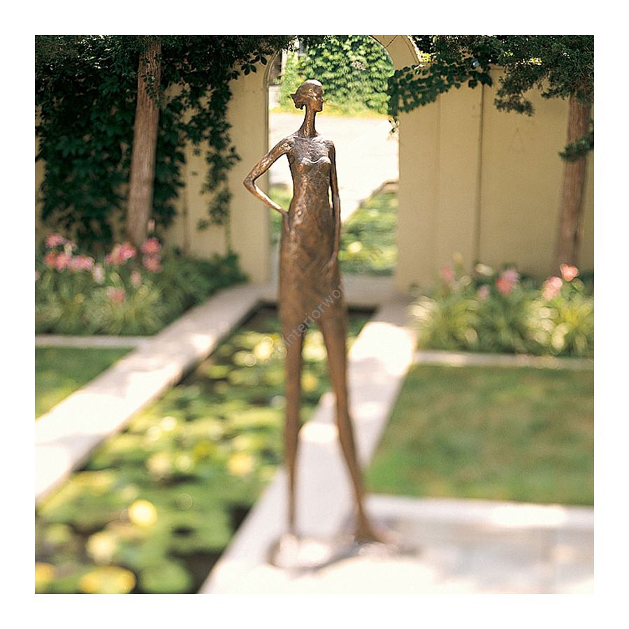 The tall sculpture Hand on Hip Tall by Tom Corbin is made of bronze.