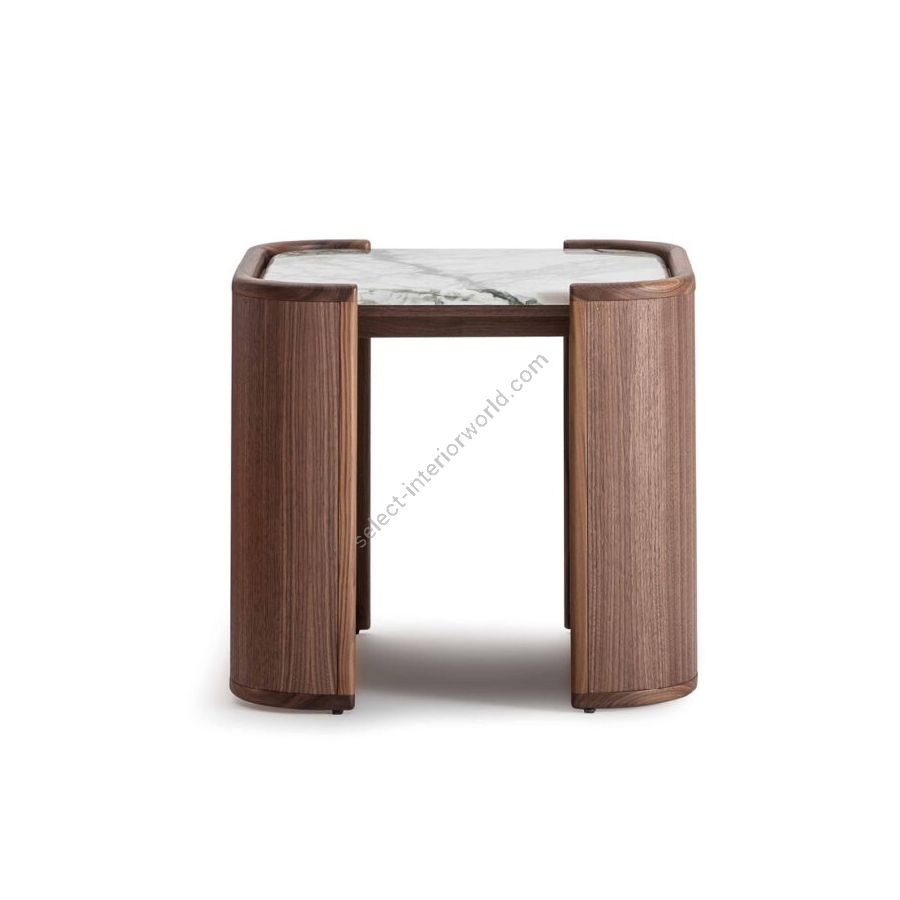 Kalid merges the structural integrity of solid American walnut with the sculptural presence of a marble top, framed by side panels available in either wood or leather upholstery from Ulivi Salotti's curated finish collection. This composition achieves a sophisticated equilibrium between substance and visual lightness, conceived to infuse spaces with distinctive character and polished elegance.