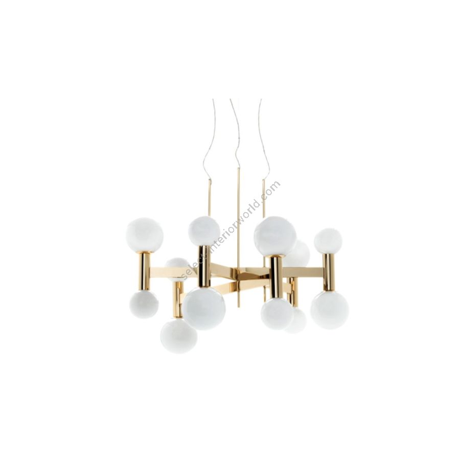 Metal structure , with white lampshade. Available in different sizes and types: chandelier , floor lamp , table lamp , night table lamp.