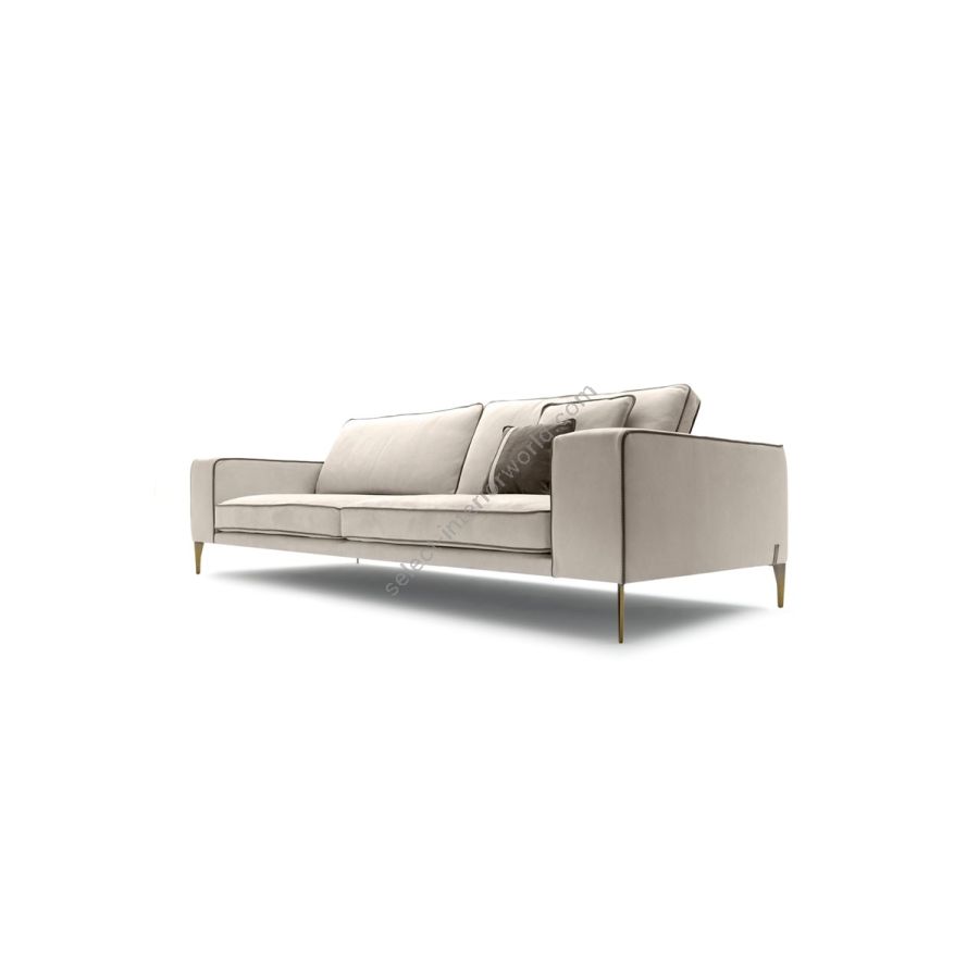 A light and essential sofa, with a clean and soft design, which is kept high on the floor by elegant metal feet