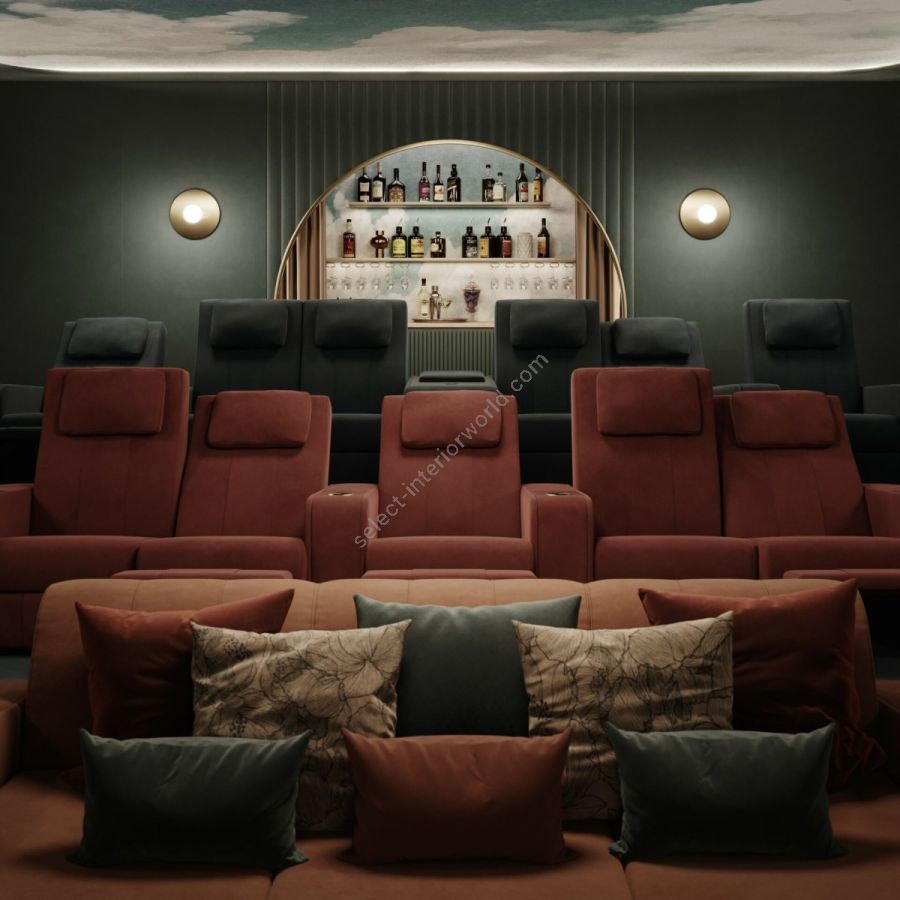 Comfort Home Cinema Chair is characterized by a perfect combination between comfort and refined details, like thick stitching on sight and ergonomic head cushions. The peculiarity of Comfort Home Cinema Chair is the possibility to enrich it with decorative materials placed in the front of the arm: precious marbles, wood inlaid with mother-of-pearl and ebony, embroidered leathers and metallic fiber.
