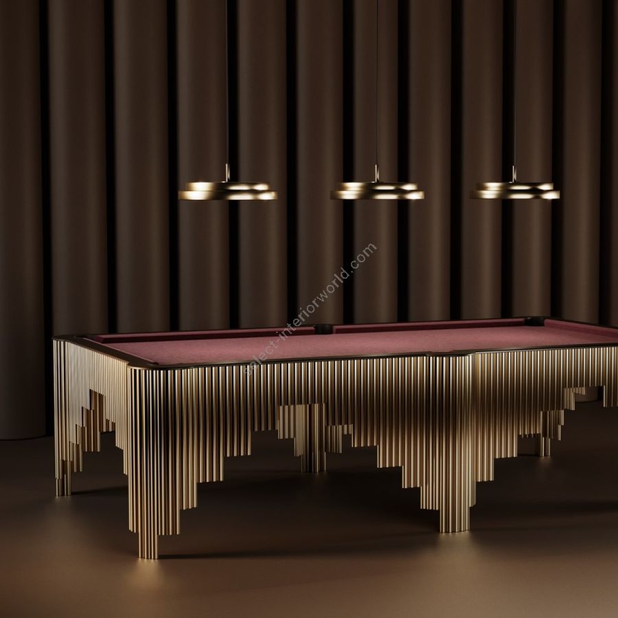 The Alhambra pool table is made of thin golden metal sticks that create a dynamic arabesque pattern. The table, despite the eccentric design, remains a professional pool table without losing its unctionality.
