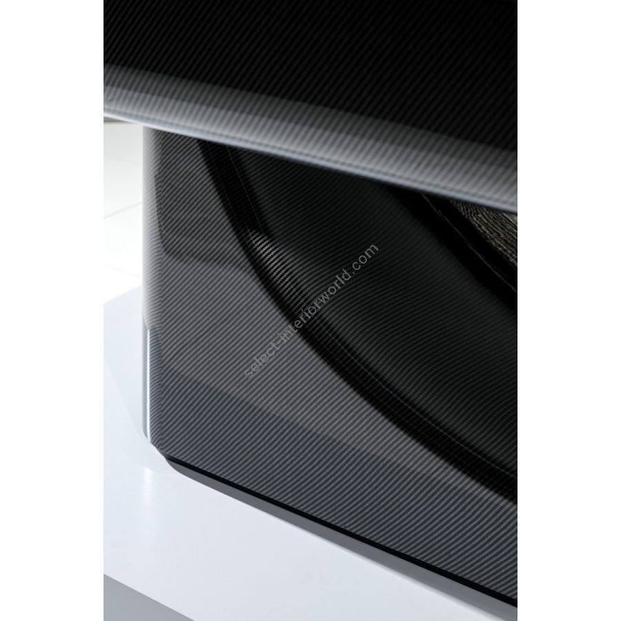 Another new possibility is to have Mono pool table completely covered with a carbon fiber/aluminum fiber transfer, giving a very hi-tech look to the billiard. The top rails can be lacquered or in ceramic stone effect.