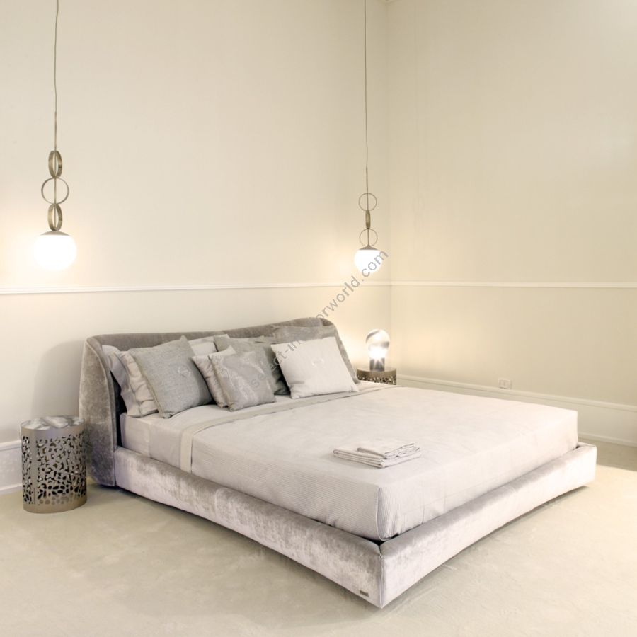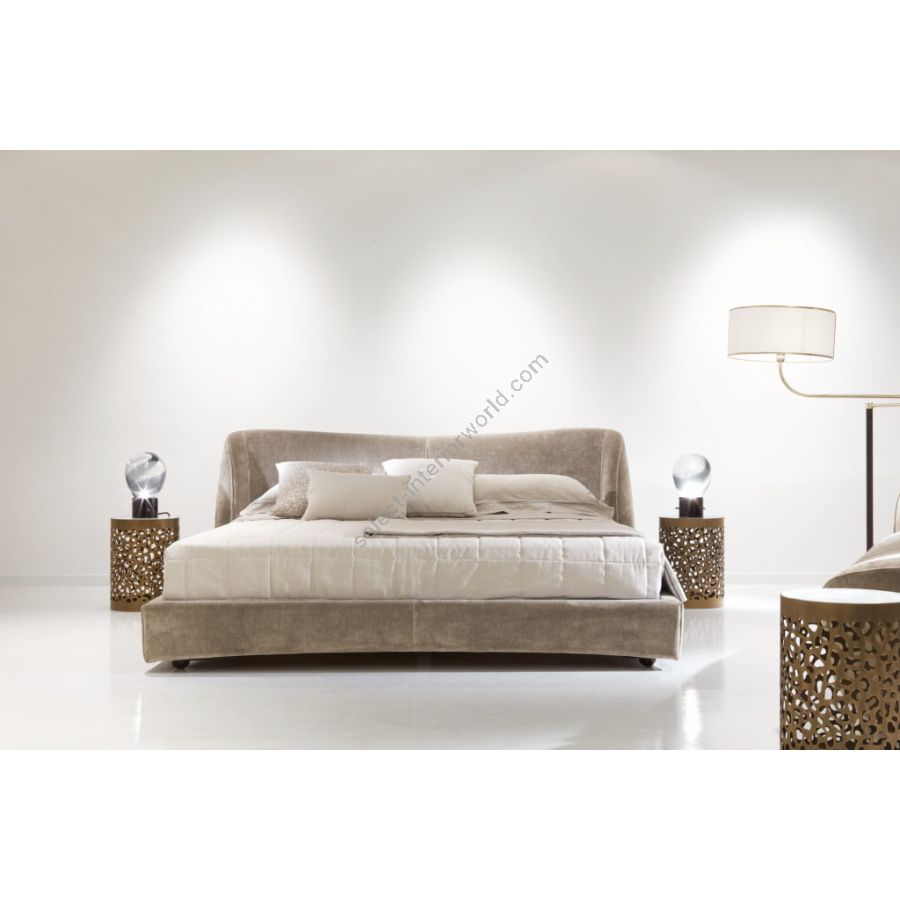 Refined bed in modern style characterized by an elegant enveloping headboard that plays on a balanced contrast between geometries and materials.