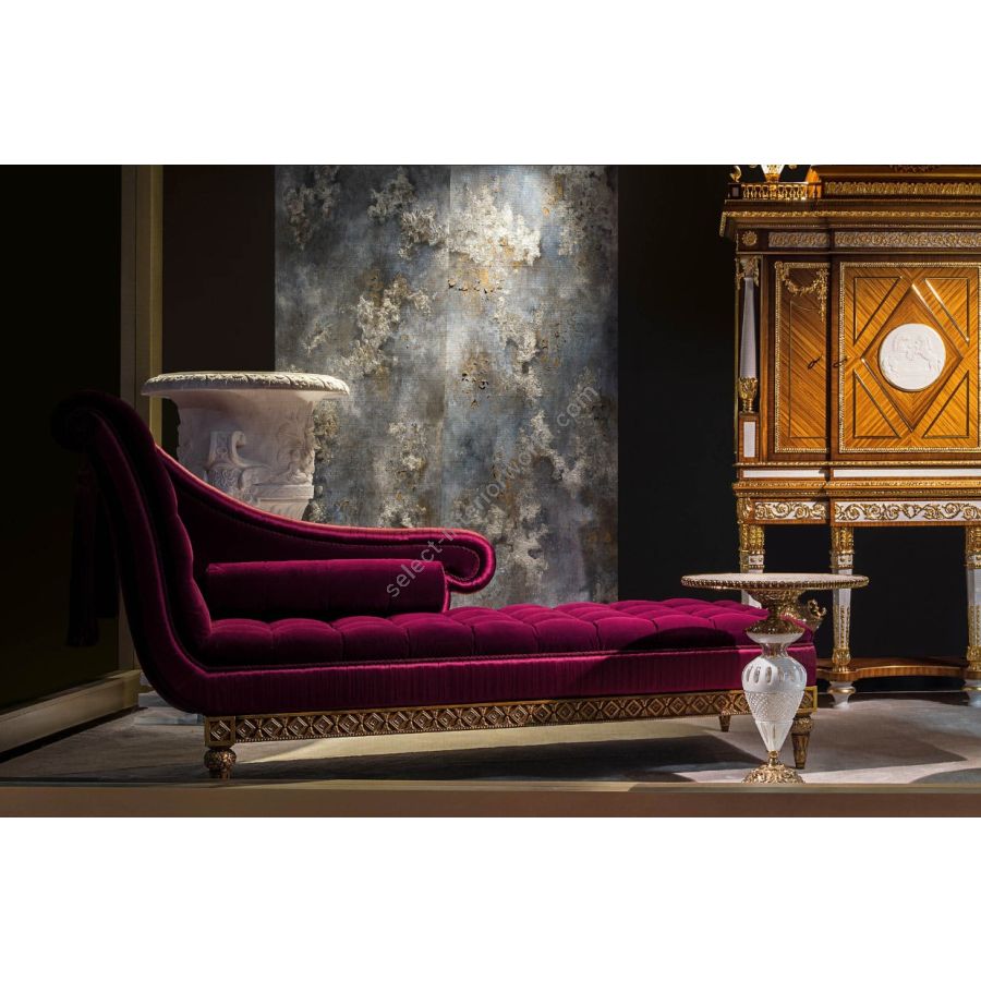 The elegant Jacqueline daybed fits perfectly into classic and contemporary environments . Its elegant solid wood frame is hand-carved and finished in walnut with gold and black details.