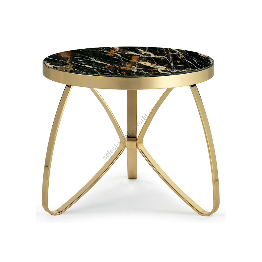 GINEVRA is a coffee table with precious gold finishes. GINEVRA is characterized by a unique aesthetic, underlined by an exclusive and distinctive design and by the refinement of the pictorial veining of the marble top.