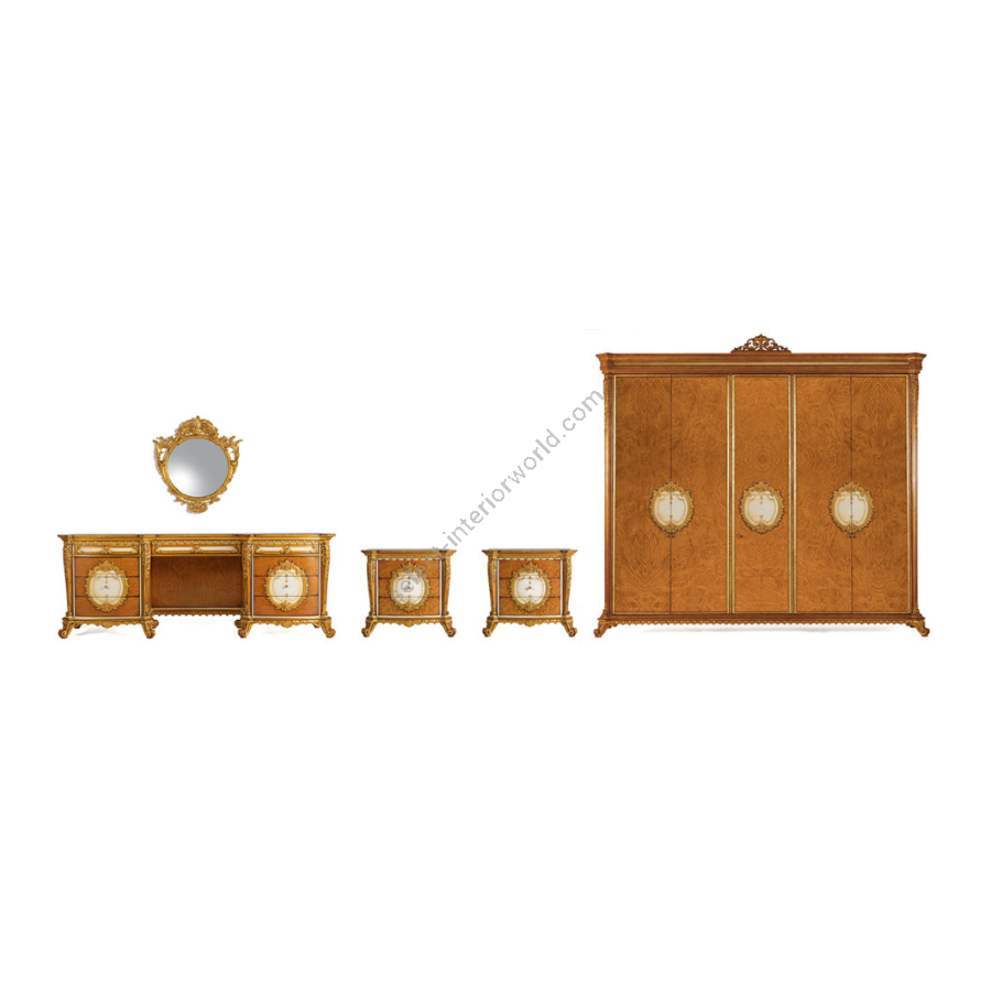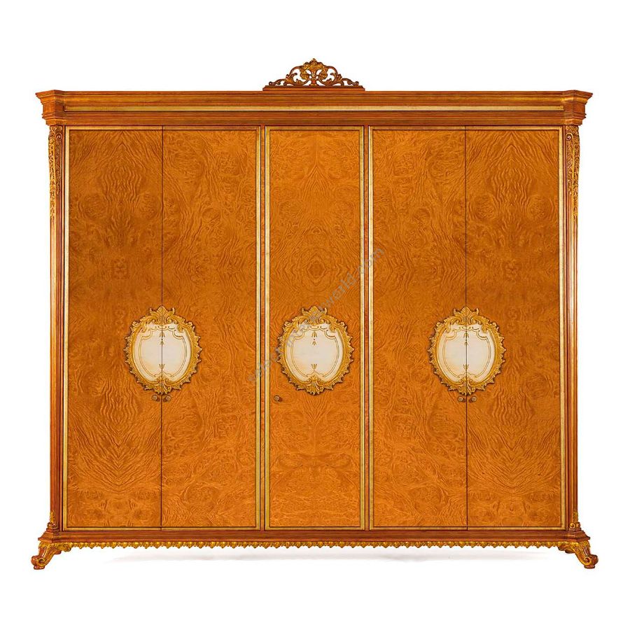 Sophisticated classic style ash burl wardrobe with hand-crafted decorations. W051/ SPECIAL WARDROBE is offered together with the W051/DR dressing table and the W051/NT bedside tables.