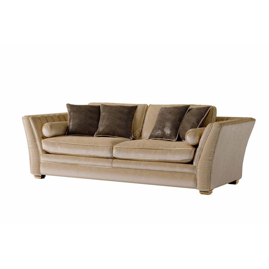 Sofa with a harmonious design characterized by elegant pleats made by hand. Its workmanship according to the Brianza tradition gives it a unique and personal touch. This sofa is also available in the version with capitonné base: CAPRI sofa.