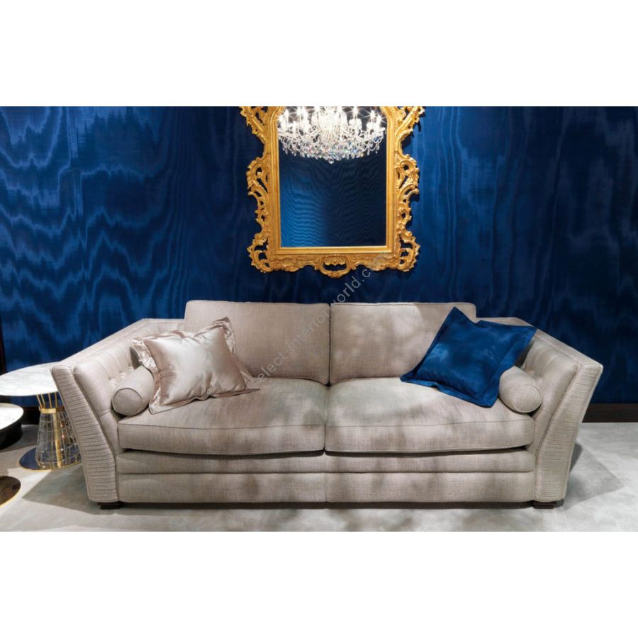 The elegant AMALFI sofa has an elegant design, a sturdy solid wood frame, traditional hypoallergenic padding and charming goose down filled cushions. AMALFI is also available in the 2-seater, 4-seater, armchair and pouf versions. Its pleasant design is the result of careful research that has resulted in a harmonious union between present and past, tradition and innovation. Its apparent simplicity hides its great design complexity. Its style represents a vision: the art of living through furniture and accessories in which design, style, material, new workmanship and tailoring create new aesthetic codes.