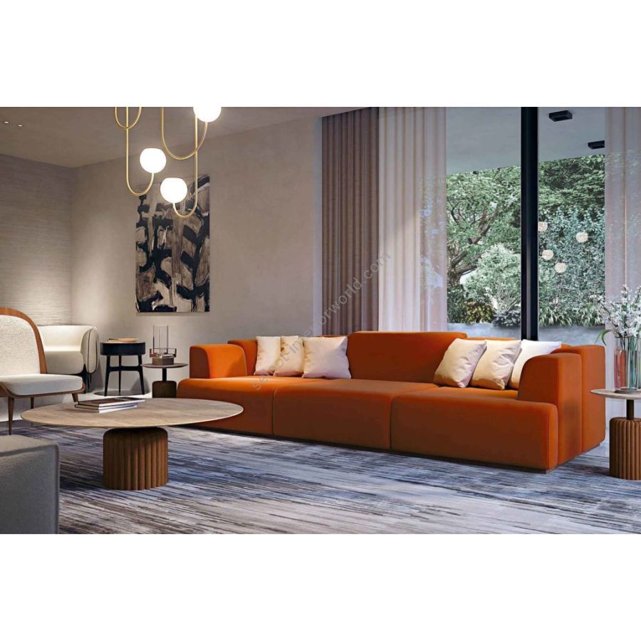 Modern style sofa with base in canaletto walnut stained wood. The backrest, marked by graduated heights, identifies a representative icon of the ZANABONI EDIZIONI modern furniture collection. NOUVELLE VAGUE is available in the 4-seater, 3-seater, 2-seater and armchair versions.