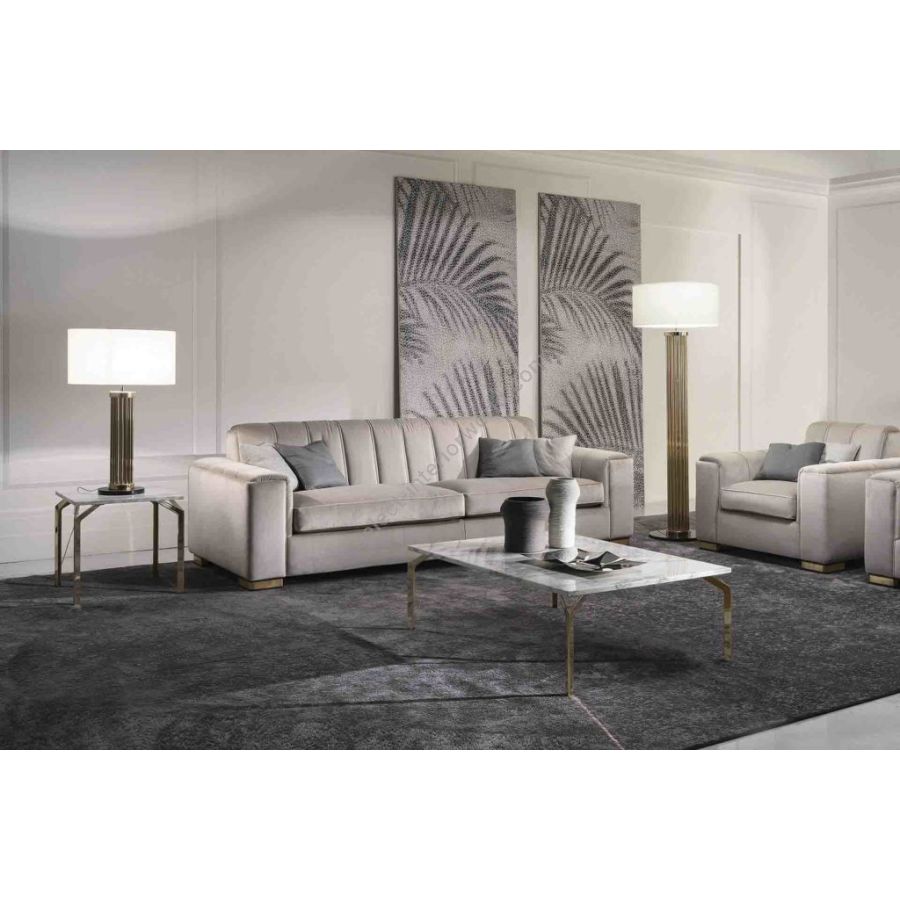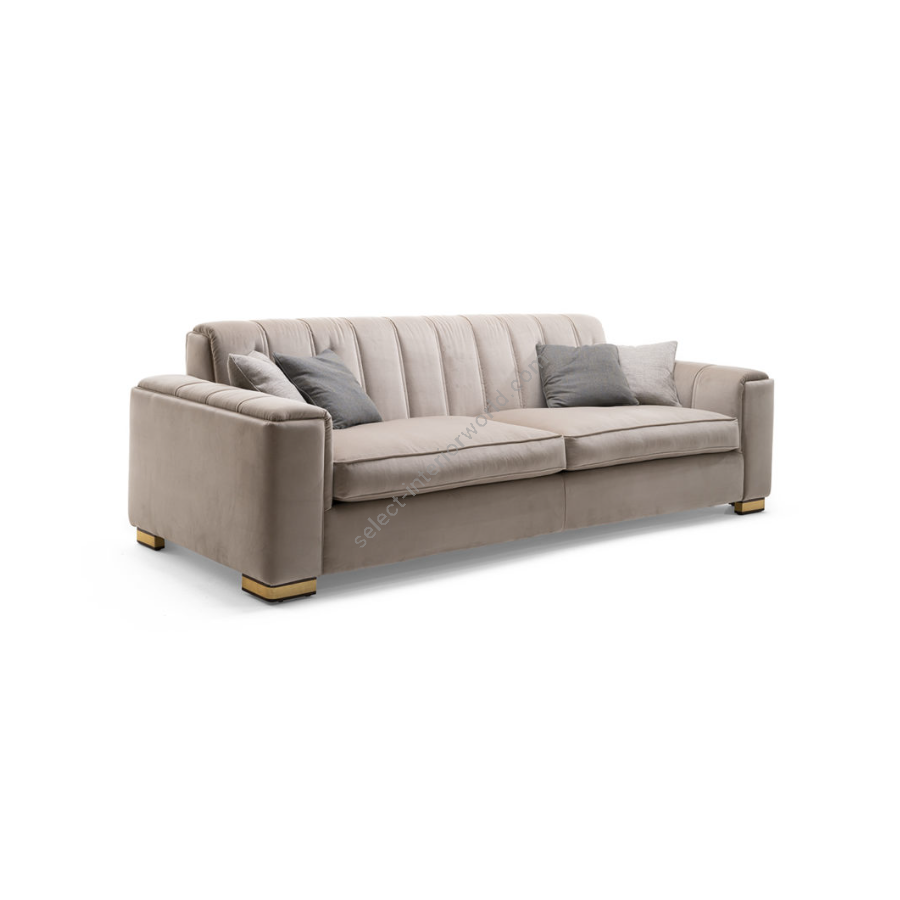 Living room composed of a two-seater sofa, a three-seater sofa, an armchair and a pouf with a solid wood frame , traditional hypoallergenic padding, goose down filled cushions with polyurethane insert. The PENTHOUSE sofa is finished with fine materials based on ancient artisan techniques handed down over the years from generation to generation.
