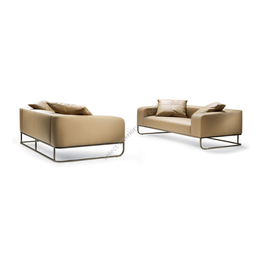 YANEZ is a leather-covered sofa raised from the floor by a chrome metal base that gives lightness to its modern design . YANEZ is a versatile and multifaceted sofa. Thanks to its sophisticated design , the YANEZ sofa responds to any need for use. The YANEZ sofa is available in the 3-seater, 2-seater, armchair and pouf versions.
