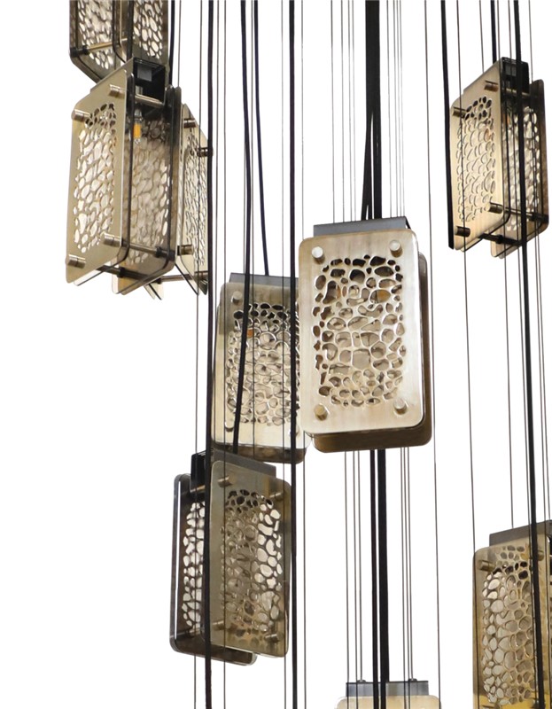 The collection arose from exploring new worlds of inspiration for creative and unique designs. Ignited by the concept of journey, the Safari Collection embraces the aesthetic spirit of the savage animal world, unexplored and enigmatic, enticing atmosphere of serenity and midday summer heat of Savannah. Bronze and earthy tones bring the wild into high-class décor. A signature lighting design delivers a fresh approach to luxury and results in a refined retreat for every demanding interior. This majestic chandelier was designed to be contemplated and harmoniously allied to an elegant composition with a chair alongside wall light from the same Collection. Safari suspension is the newest addition to the Castro iconic designs.