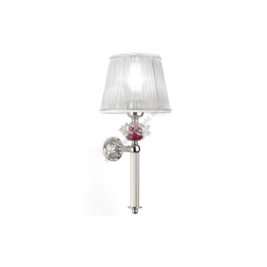 Wall lamp in brass and fabric lampshade with Florentine crystal flower. Lighting item that diffuses the light with great effect in the surrounding environement creating a warm and welcoming atmosphere.