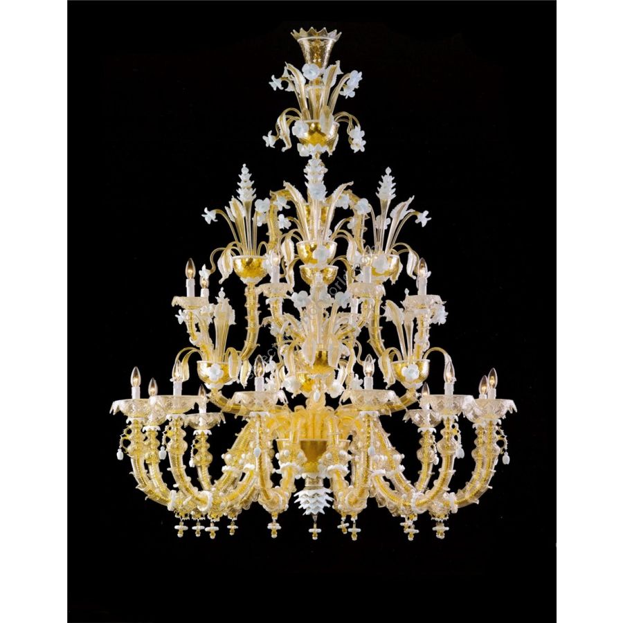 - Italian Luxury Lighting / Chandeliers / Venetian Glass Gold And White 20-Light V8009 020