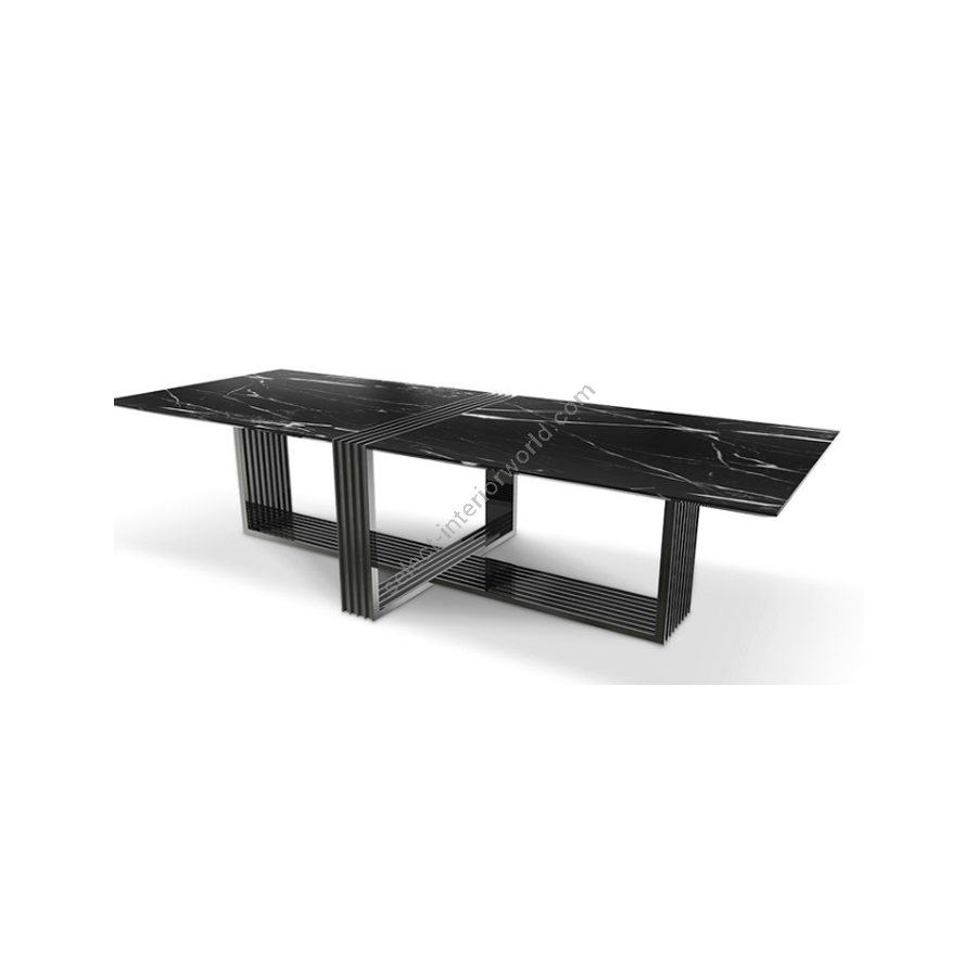 The Vertigo Black Dining Table XL is an impressive furniture piece with a sublime shape, representing the ultimate in design. Made with high-end materials such as stainless steel and marble, this table creates a unique and sophisticated environment in any dining room setting.
