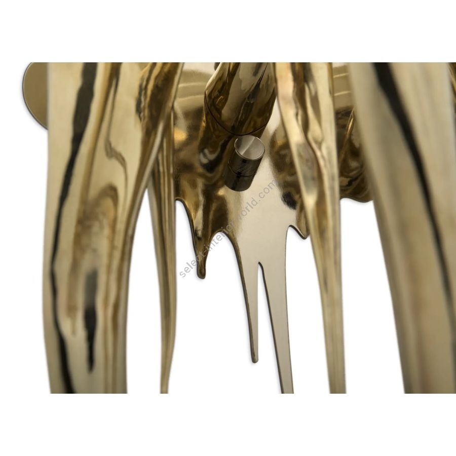 The Wax Wall Lamp conveys an old-classic luxury feel with a contemporary approach. This elegant wall fixture is crafted entirely of gold-plated brass, bringing a modern touch to any setting. The handmade crystal glass tubes flow seamlessly in a unique and graceful shape, creating a striking wall light that exudes refinement and charm.