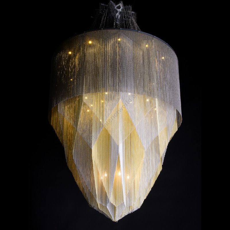 A sleeker simplified Crystalline version of the mandala No.1. Illuminated by 42 surface mounted and suspended G4 LED Lamps.