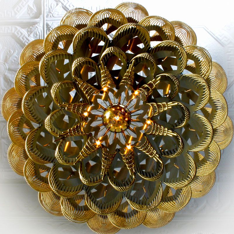 A suspended chandelier inspired by the South Africa`s national flower the `Protea`. Illuminated by 7 surface mounted G9 Halogen or LED lamps.