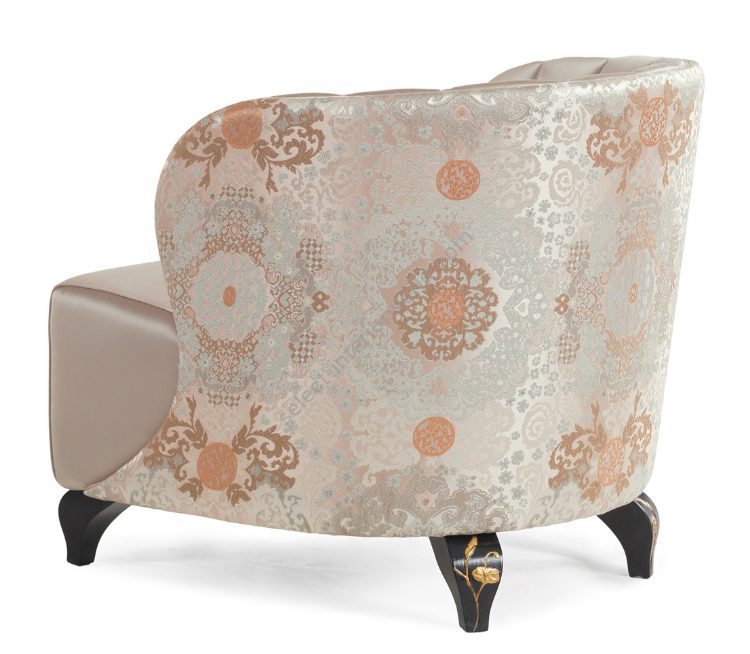 The CELINE armchair is a magnificent complement to an entrance, a bedroom or a living room. A piece of artistic craftsmanship that thanks to its splendid decorations on the armrests and backrest, can also be placed in the center of the room and live as a protagonist.