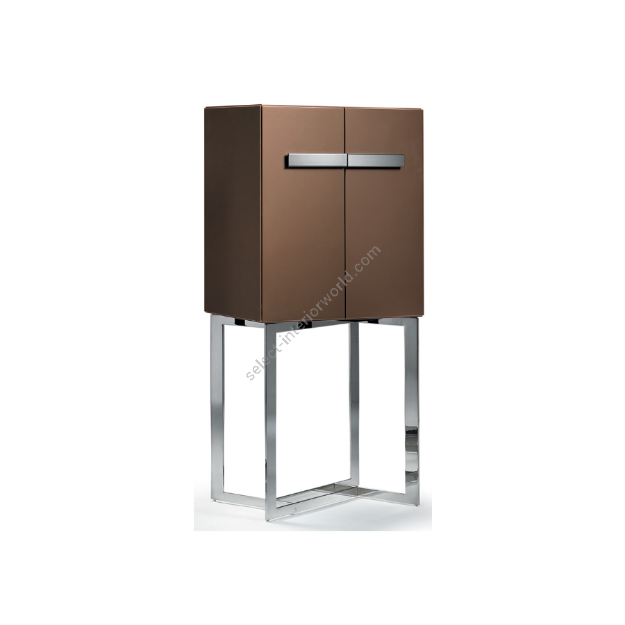 Extreme lightness and a functional design distinguish the KANUMA bar cabinet, proposed with a metal base with a chrome finish. KANUMA is perfect for living rooms with a refined taste; the ideal product for furnishing a convivial corner within the living area.