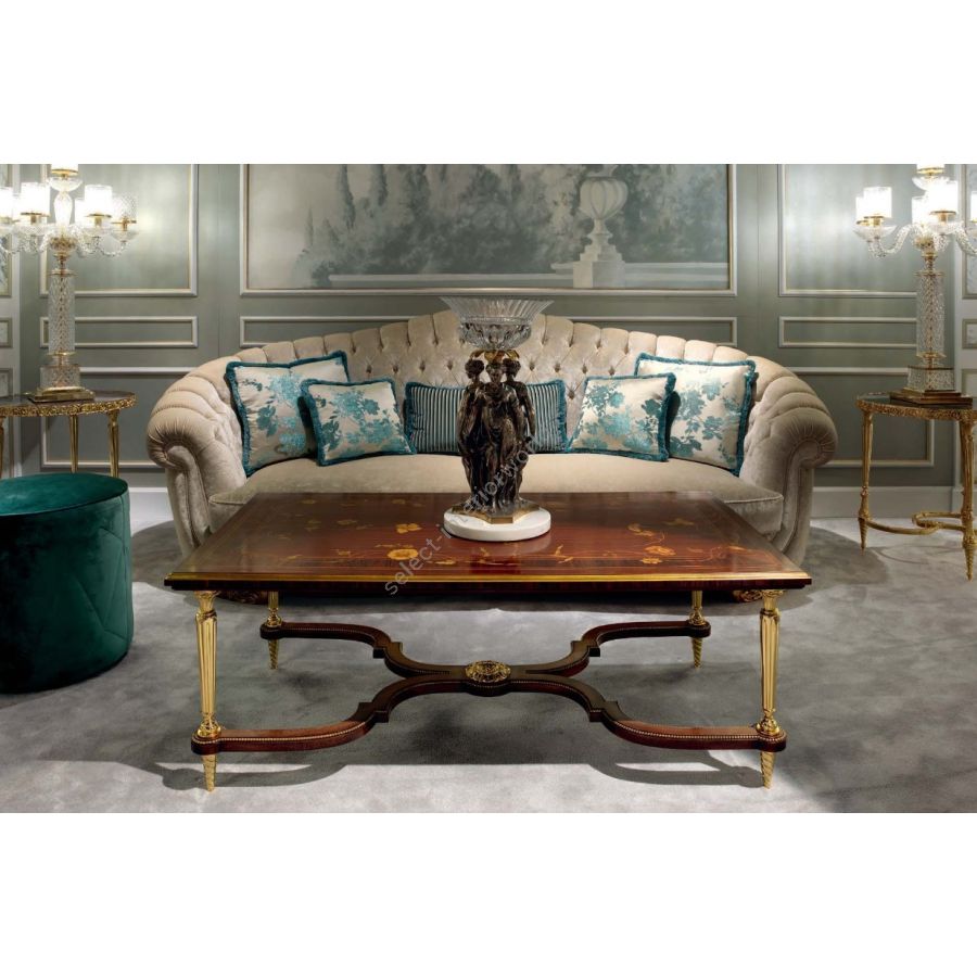 Magnificent classic style sofa with elegant capitonné upholstery. Scenographic, and with a strong visual impact, the Andersen sofa fits perfectly into the traditional environments of the classic and contemporary style. Sumptuous and sophisticated with soft and welcoming lines, the Andersen sofa is decorated with antique gold details that embellish the design giving it a chic and enchanting look.