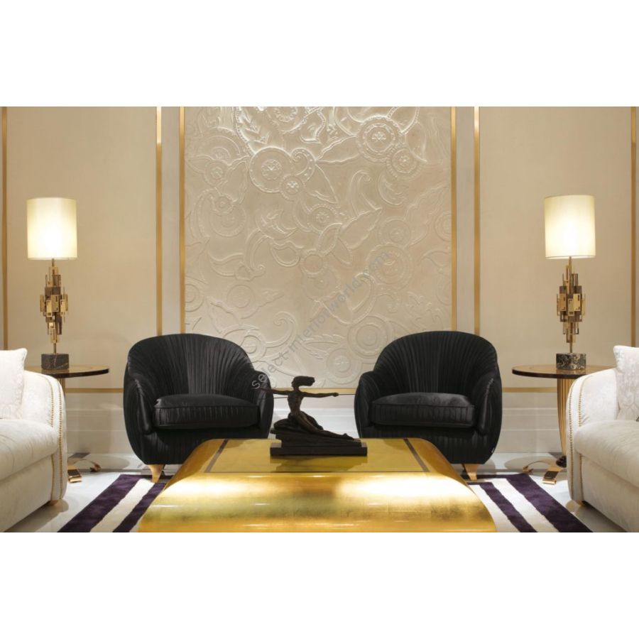 Elegant table lamp available in two different sizes, featuring a brushed brass finish and a Nero Portoro marble base. The finely crafted lower part is the unmistakable feature of this collection. L044 and L045 are finished with fine materials based on ancient artisan techniques handed down over the years from generation to generation.