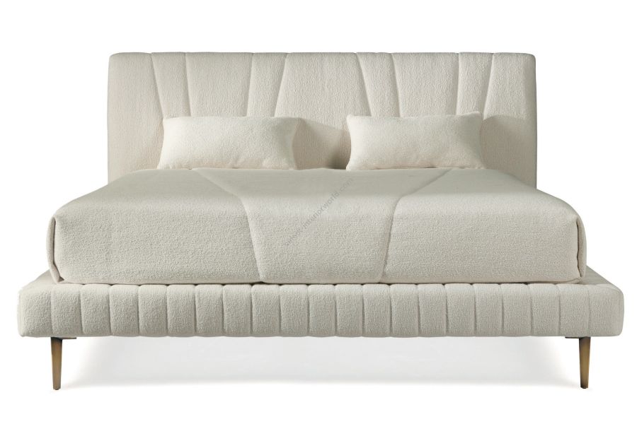 Delicate and glamorous, the modern bed TIME BREAK, goes well with the most disparate styles giving a sense of softness and elegance to the entire environment. The soft fabric of its upholstery is like an invitation to relax, its simple workmanship with an exquisitely sartorial flavour decorates the padded headboard of the bed. Its design is clean and essential and hides a soft and welcoming soul in which perfect proportions coexist. The bronzed metal structure of the TIME BREAK bed is highlighted only at the support feet, while it is hidden for the rest by the fabric or leather of the upholstery.