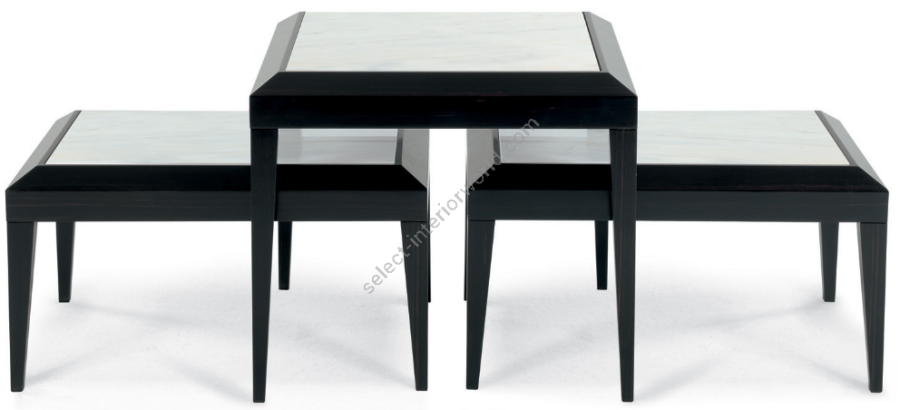 Set of central coffee tables veneered in ebony with marble top, the simple and square design adapts with great ease to various types of settings. The T143 tables are iconic complements with an exclusive design proudly signed ZANABONI.