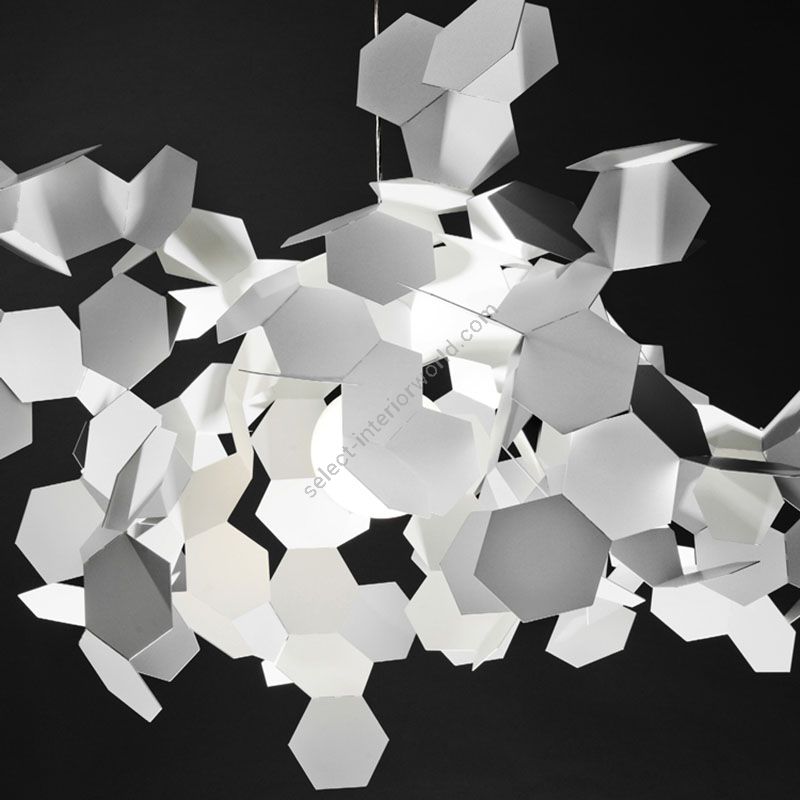 Available in a range of finishes, Andromeda seamlessly adapts to different interiors, from minimalist settings to more expressive environments. Its branch-like structure enhances the sense of organic movement, while the geometric panels diffuse light in a way that transforms the atmosphere of the room, making it both functional and visually captivating.